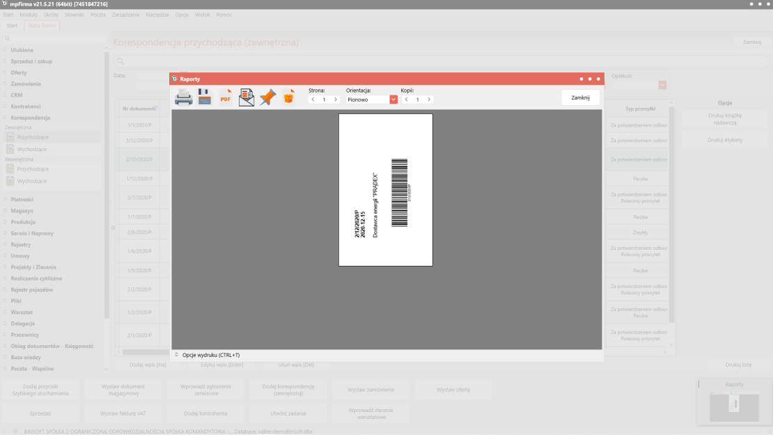 Prowadź elektroniczną książkę korespondencji. Zarządzaj korespondencją wychodzącą i przychodzącą, zewnętrzną i wewnętrzną oraz jej dekretacją. Drukuj książkę nadawczą, koperty oraz etykiety.
